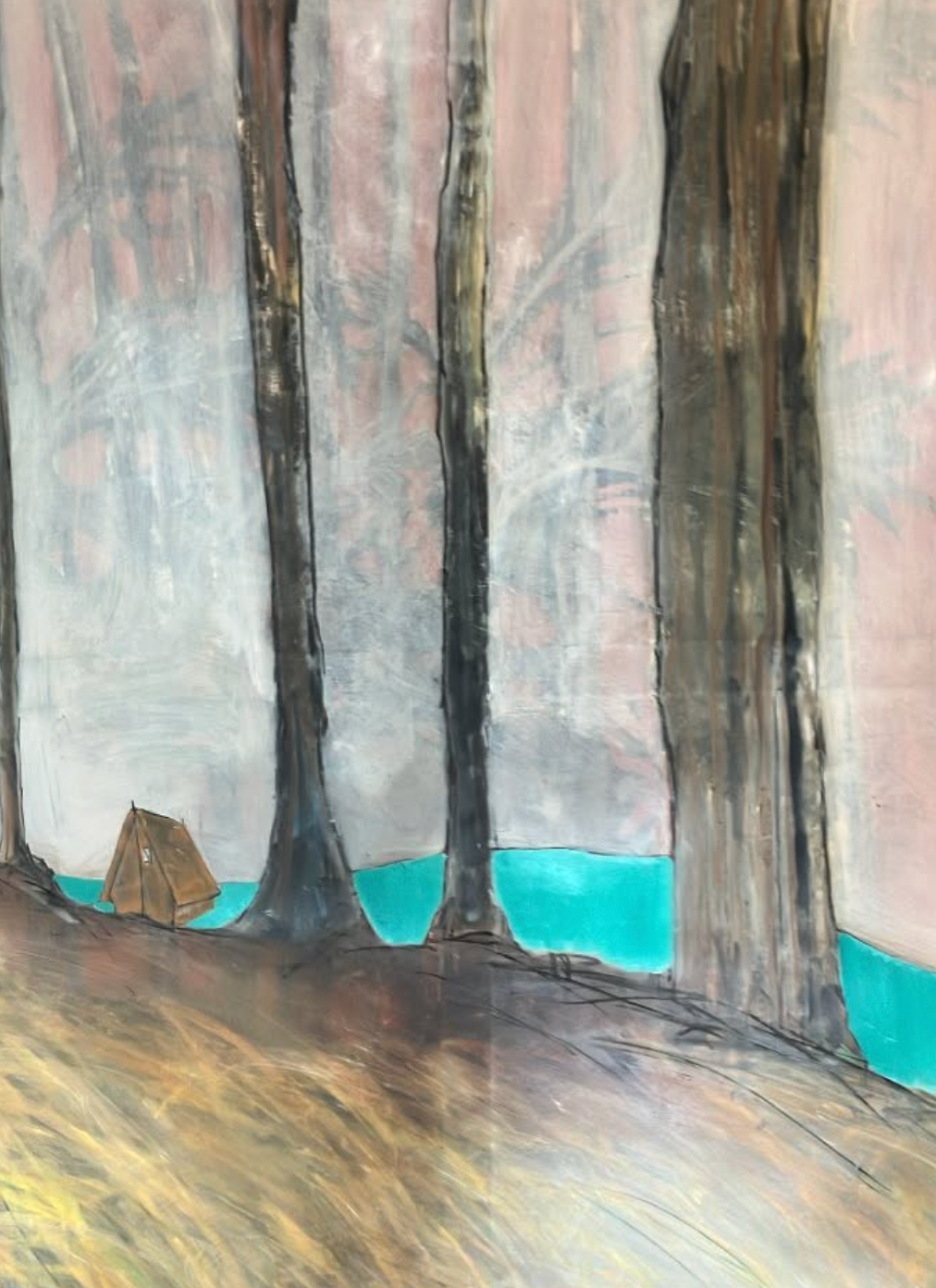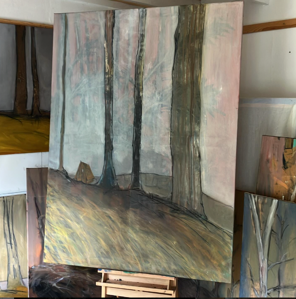 An ongoing project exploring nature’s space and the human trace. The trees stand as witnesses to both presence and absence; a quiet balance between life and emptiness. Layers of oil and movement capture fleeting moments of time and transformation.